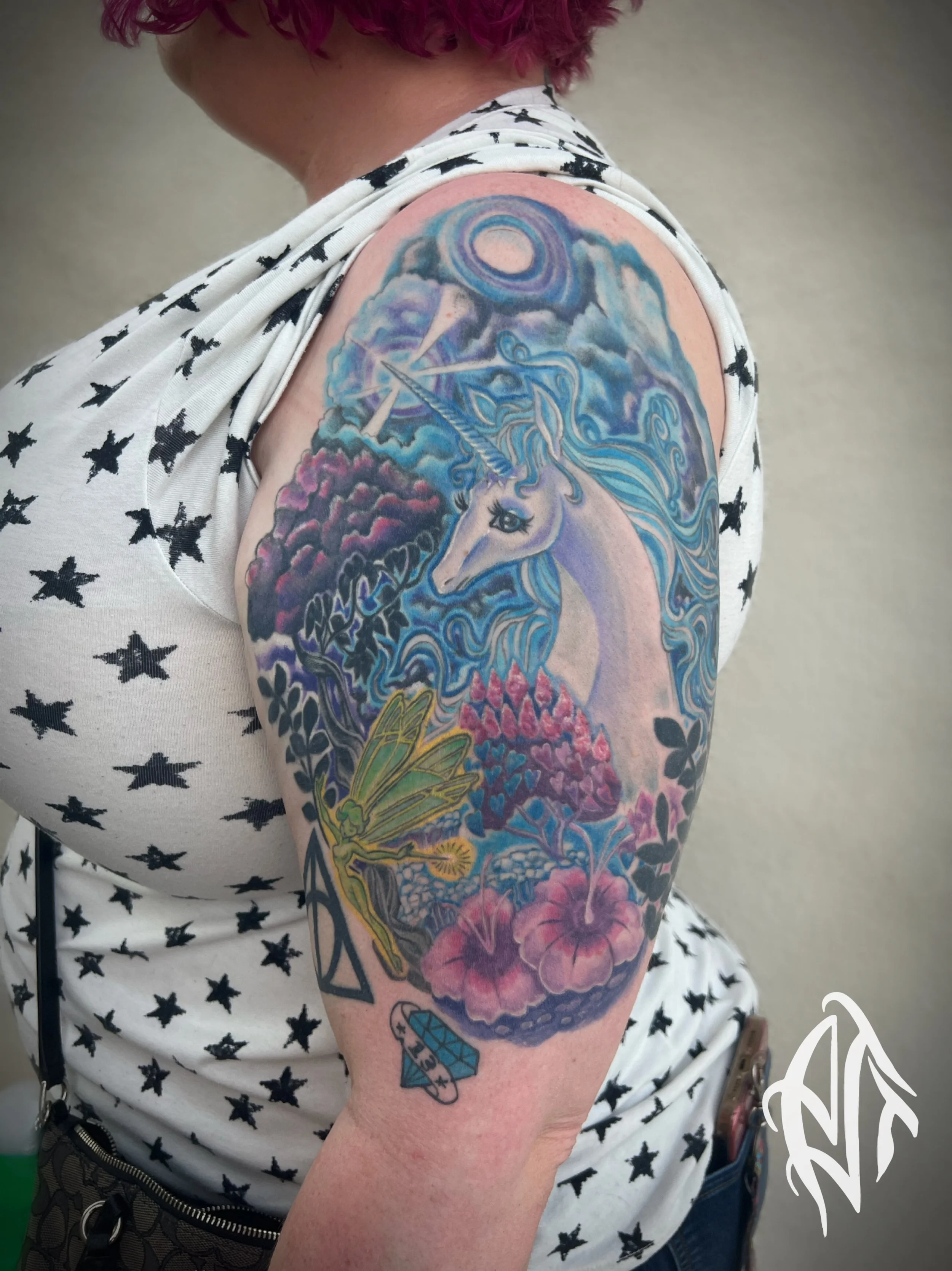 Tattoos Watercolour/Painting/Colour Fandom/Pop Culture Linework/Ornamental/Dotwork Black and Grey Cover Ups/Scar Cover Ups/Reworked Healed